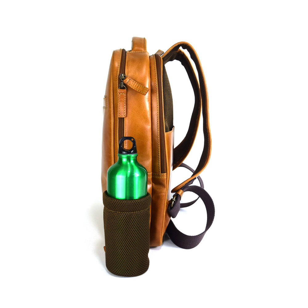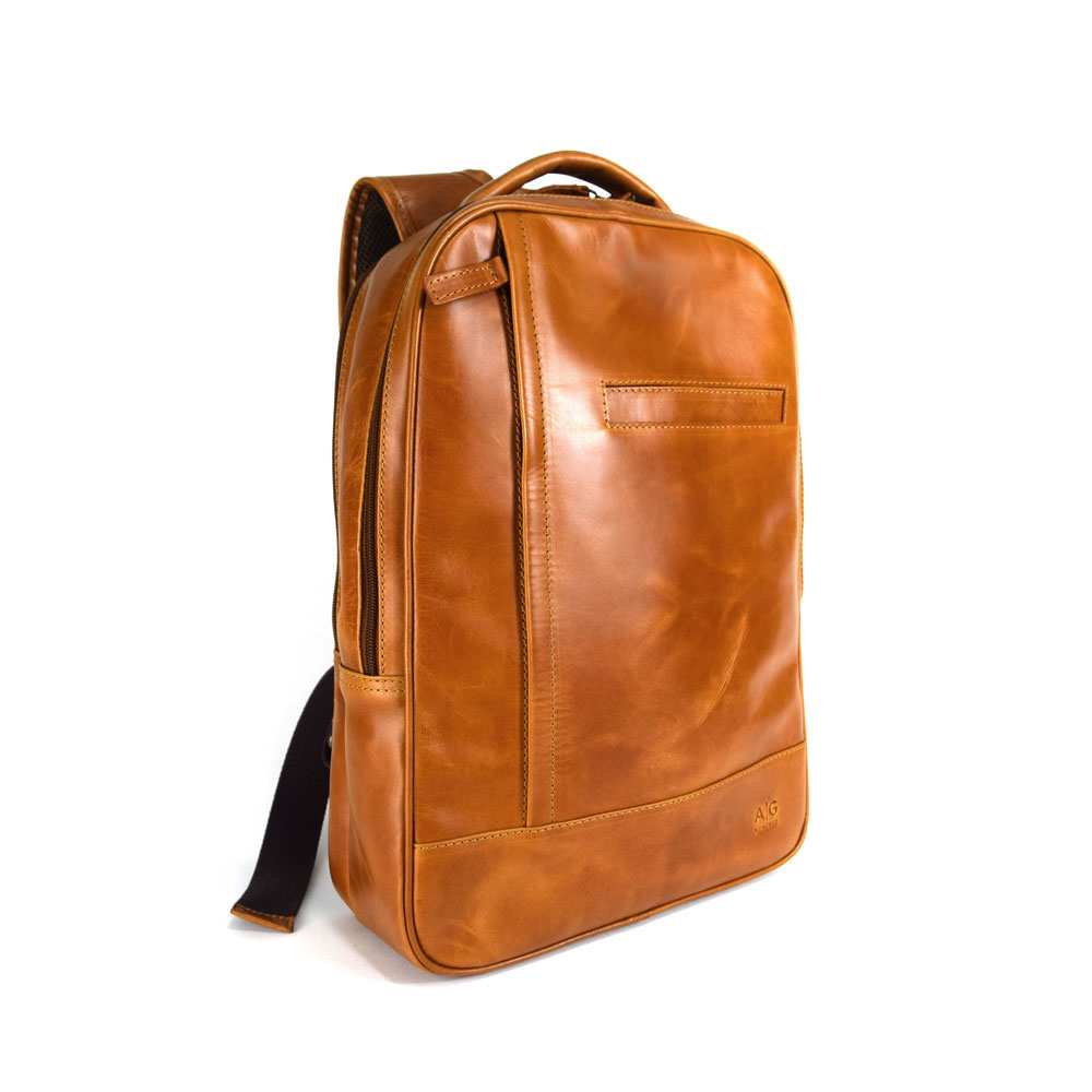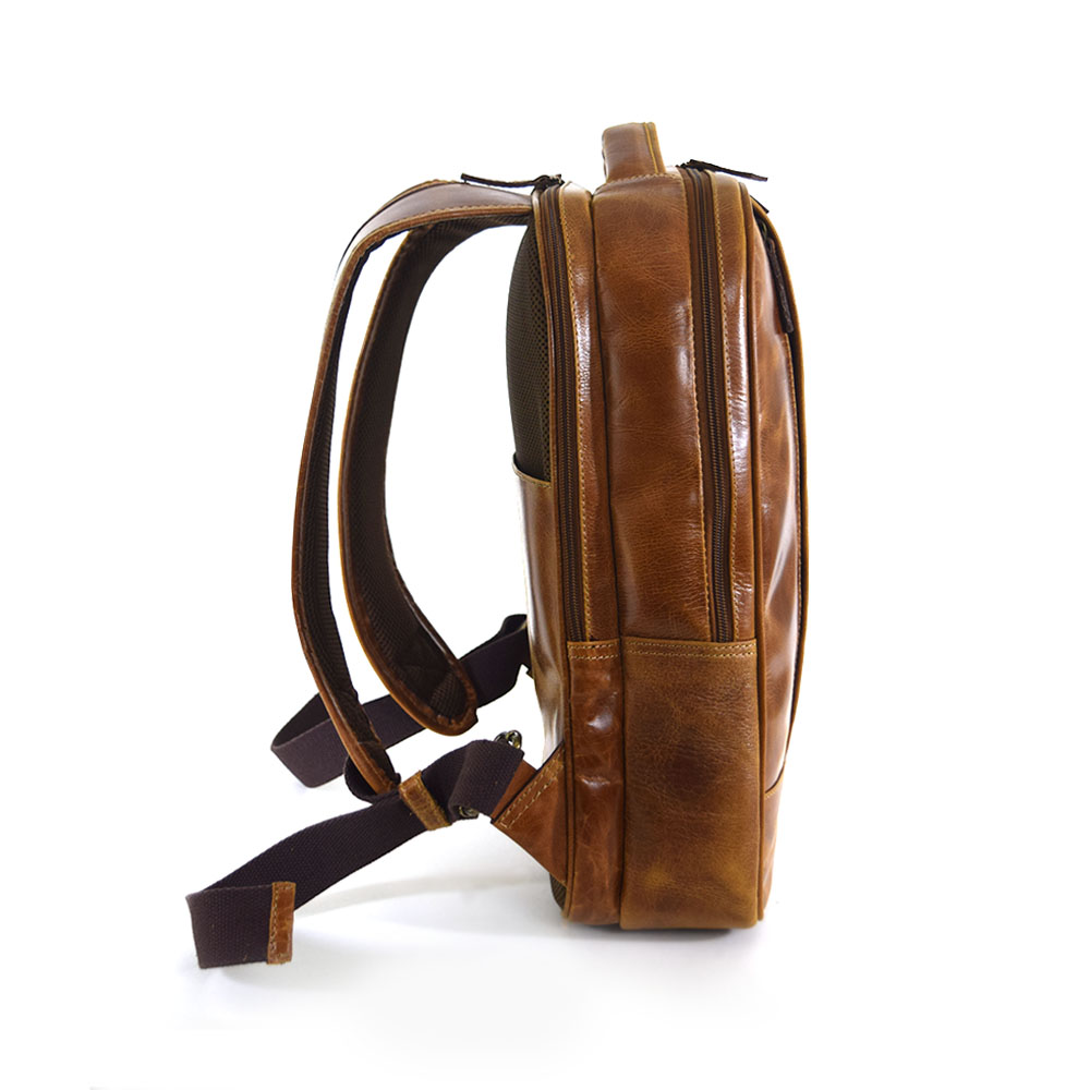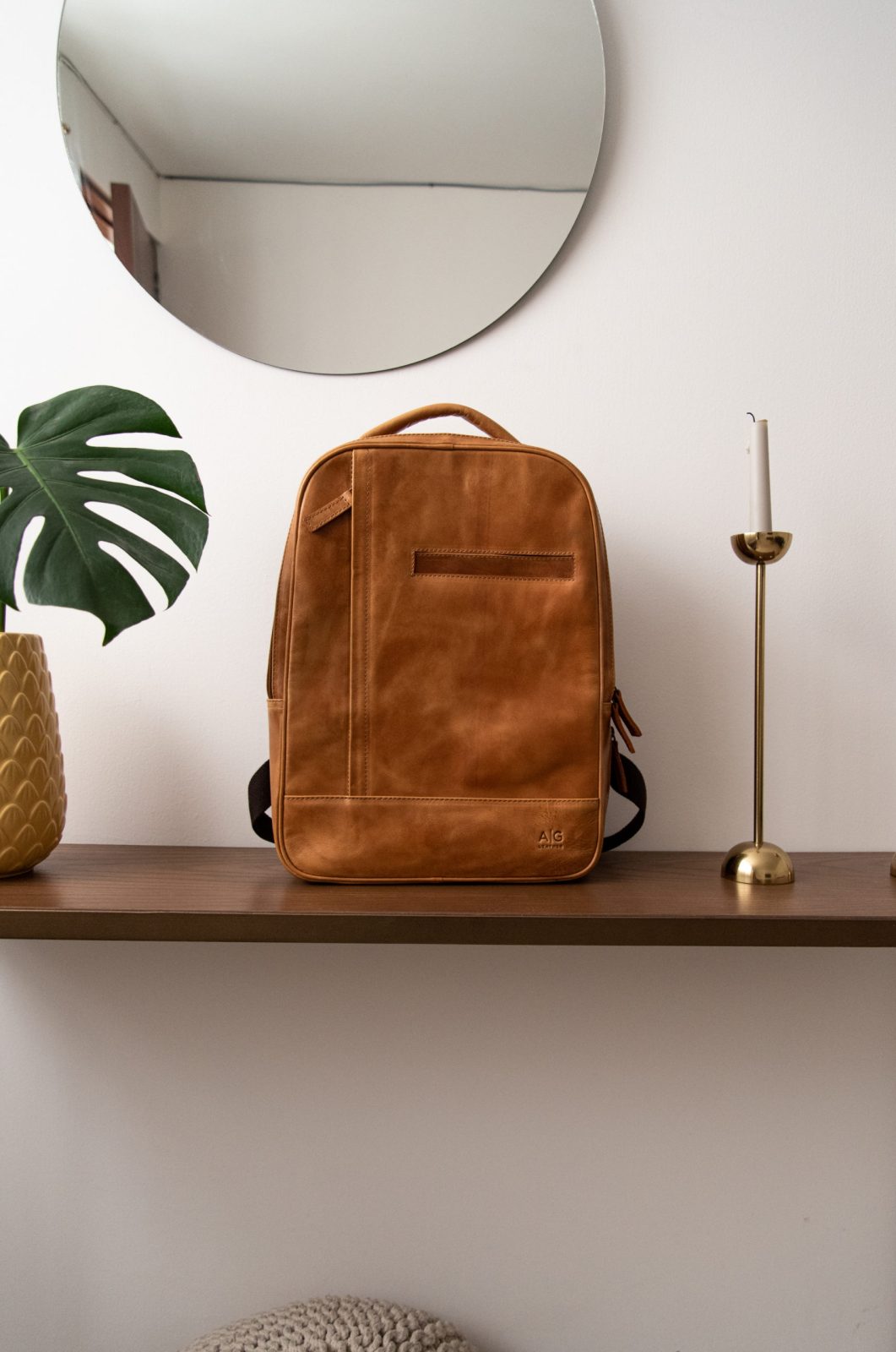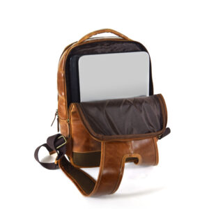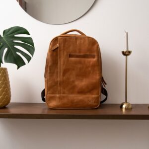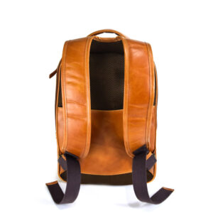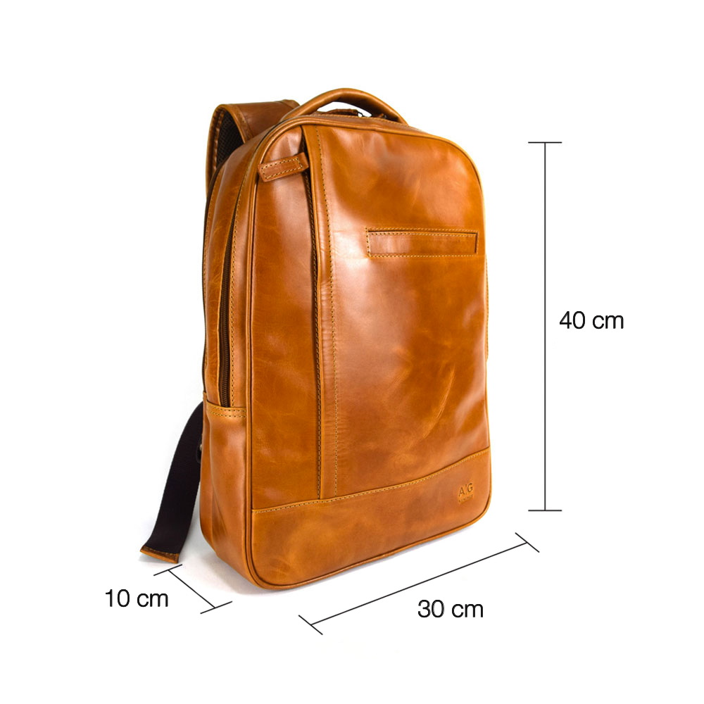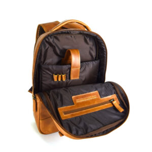 City Backpack with Double Compartment for 16” Laptop, Cognac-colored Leather