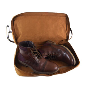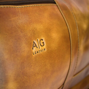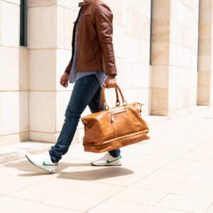 Travel bag with shoe compartment – made of 100% pull up cognac leather+ free case
