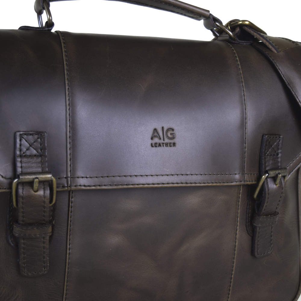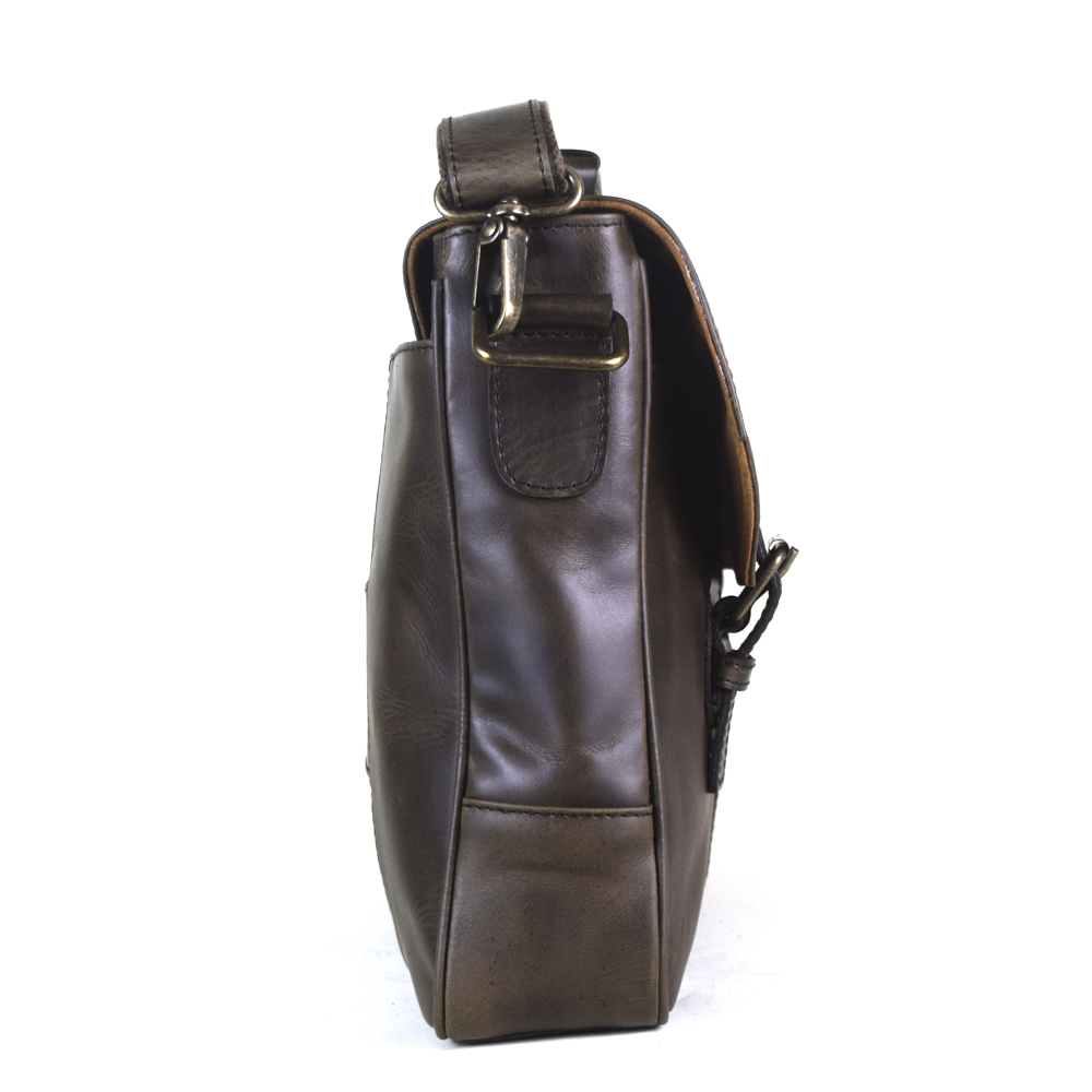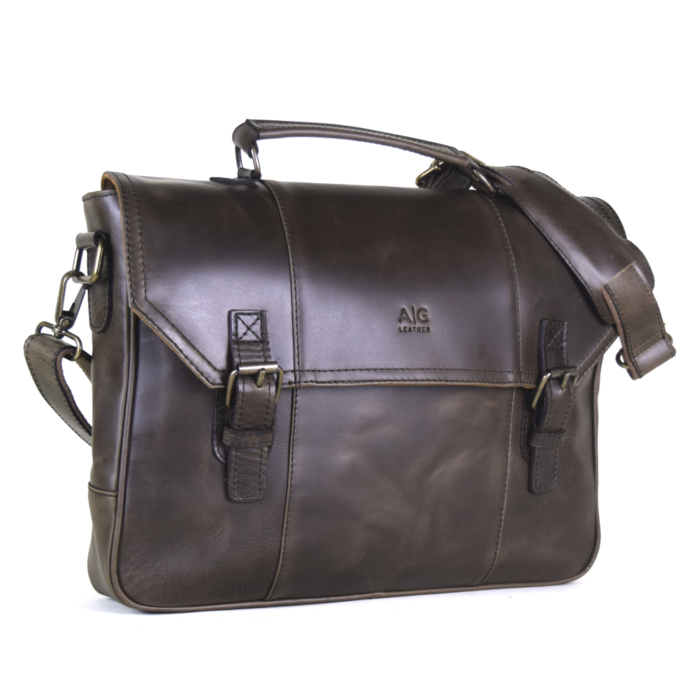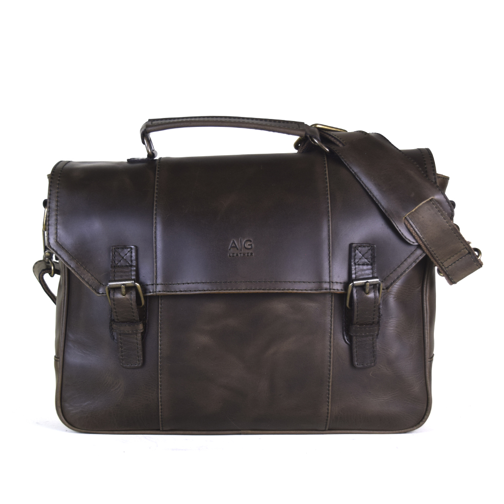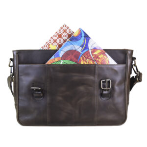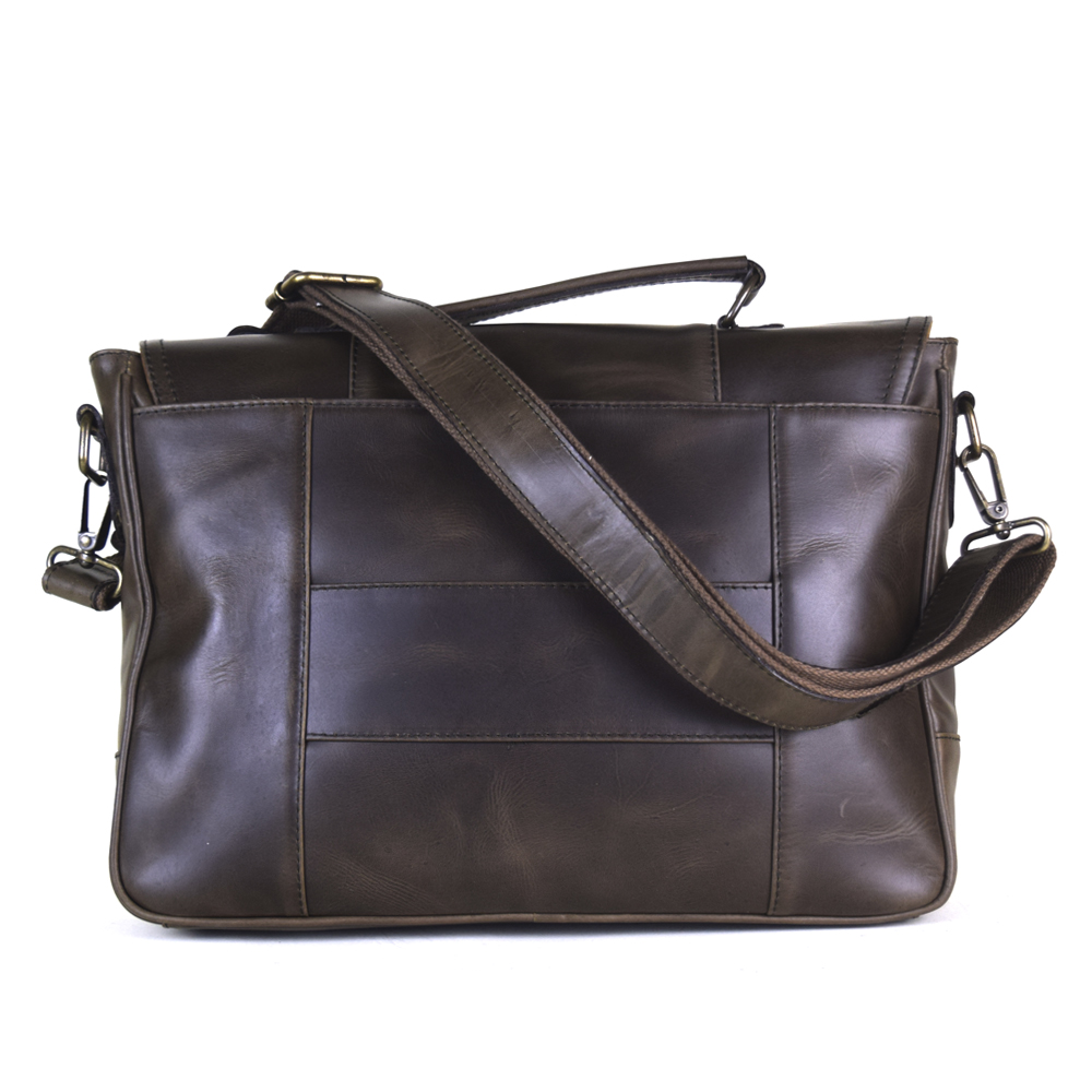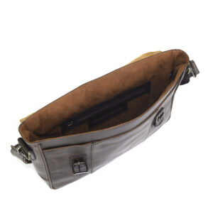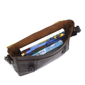 Vintage messenger briefcase, 100% genuine leather chocolate color. Fits laptops up to 15″